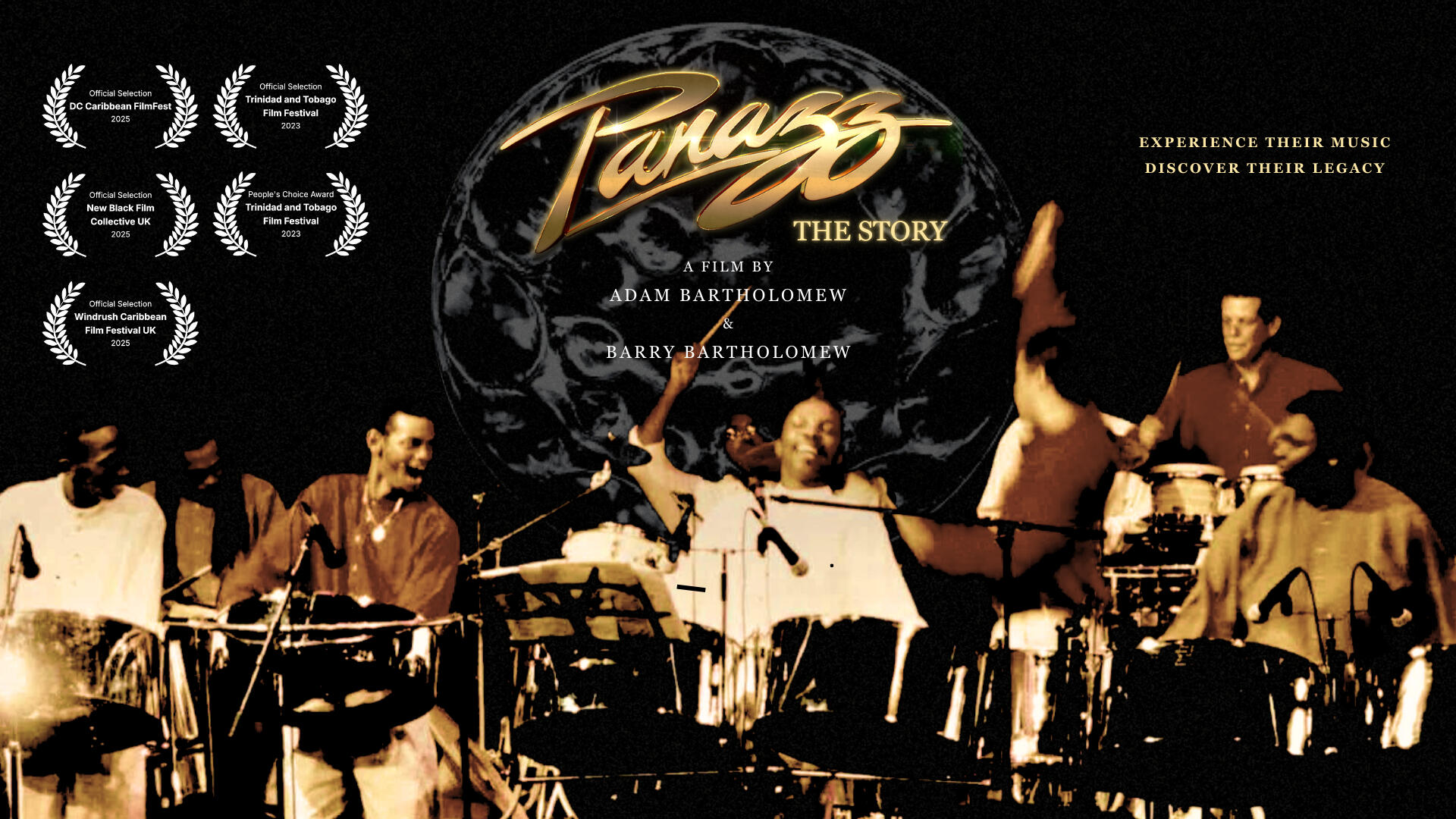 Panazz: The Story, winner of the People's Choice Award at the 2023 Trinidad & Tobago Film Festival, is a moving documentary about the Trinidadian jazz Steelpan group, Panazz. Co-directed and produced by Adam and Barry Bartholomew, the film vividly portrays the band's journey from their 1990s beginnings to a decade of international recognition. Through heartfelt interviews, archival footage, and stunning visuals of Trinidad & Tobago, interwoven with Panazz's unique music, the film showcases how this small Caribbean ensemble challenged societal norms and transformed global perceptions of Steelpan music.